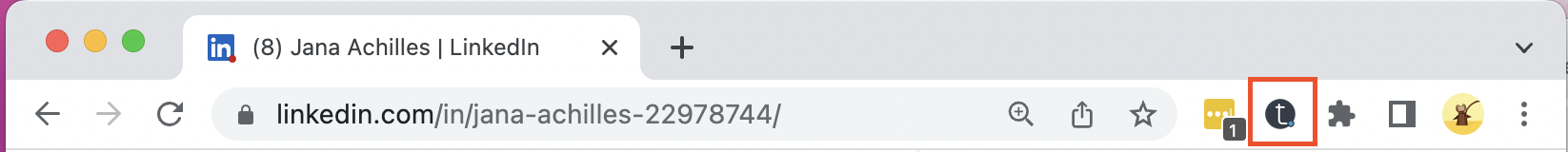 • Gehen Sie zu LinkedIn oder Xing und öffnen Sie ein entsprechende Profil: Hier können Sie nun den Sourcer nutzen. Nach der Installation finden Sie das Symbol der Erweiterung im oberen rechten Bereich des Browsers: