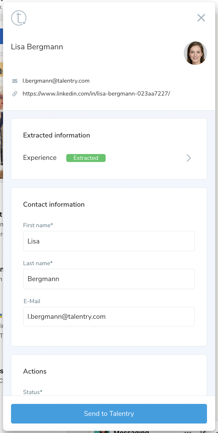 Zu diesem Zeitpunkt weiß das Talent noch nicht, dass Sie die entsprechenden Daten in das System übermitteln wollen. Daher empfehlen wir, diese Option nur zu nutzen, wenn Sie bereits mit der Person in Kontakt getreten sind.