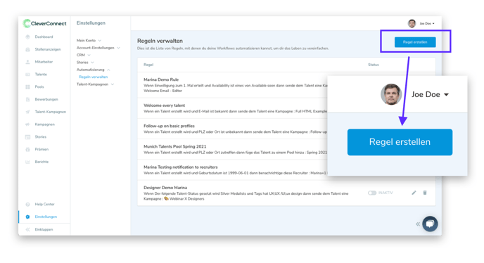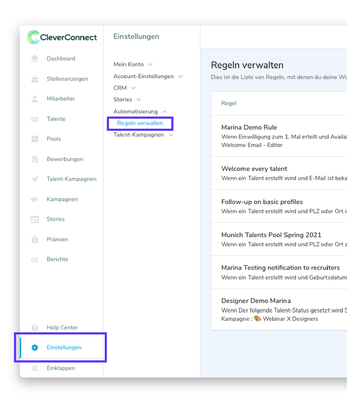CRM-Automatisierungen - Regeln verwalten