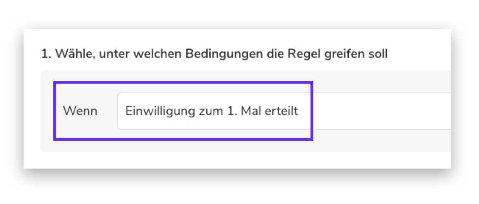 Wir bieten auch einen weiteren Trigger " Wenn Die Datenschutz-Einwilligung zum 1. Mal erteilt wird", mit dem Sie wesentlich effektivere Regeln erstellen können.