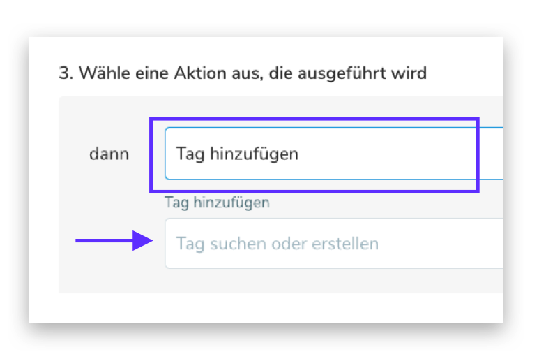 Die Arbeit, die unser System Ihnen aktuell abnimmt, kann unter dem dritten Schritt, den Aktionen, ausgewählt werden.