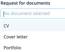 With this option we can ask candidates to enter documents at the end of the video interview. By default, 3 types of documents can be requested from the predefined list: