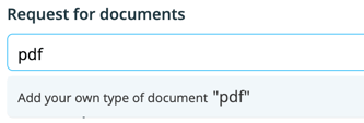 However, should you require a document other than those listed, simply type in the desired document type in the text bar and click Enter, this way the required document will be displayed in blue in the text bar and candidates will see the name of that document to be inserted at the end of their video recording: