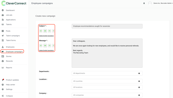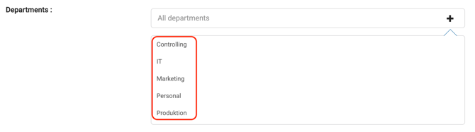 Once the subject and message are written, you can filter out various variables. For example, if you only want to send the job to certain departments, you can click on the field and select the relevant departments.