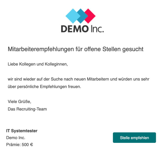 After the campaign is sent, the company logo and the subject or message created by the recruiter are displayed. There is also a direct link to the previously selected job openings to ensure a seamless user experience.