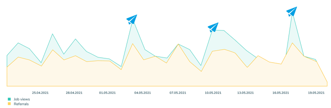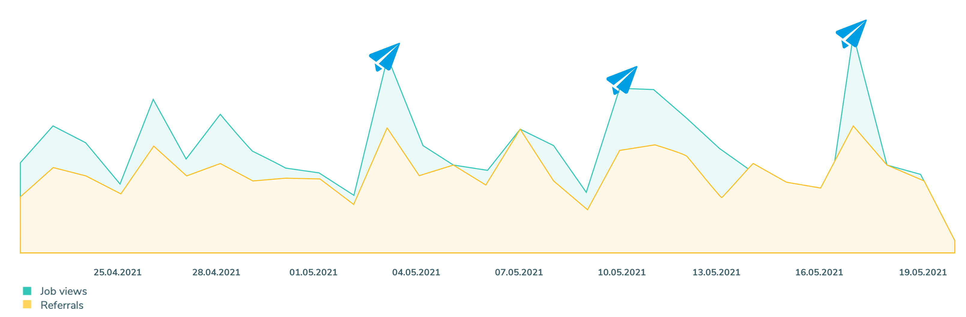 Continuous communication is not only the key to consistently high user activity, but also to the long-term success of your Employee Relationship Programme. A newsletter is the easiest way to regularly remind your employees to share referral content and has also been proven to generate more applications due to higher usage.