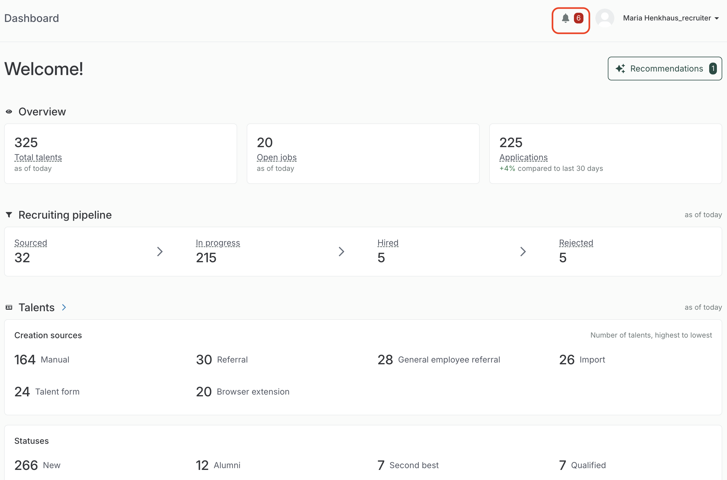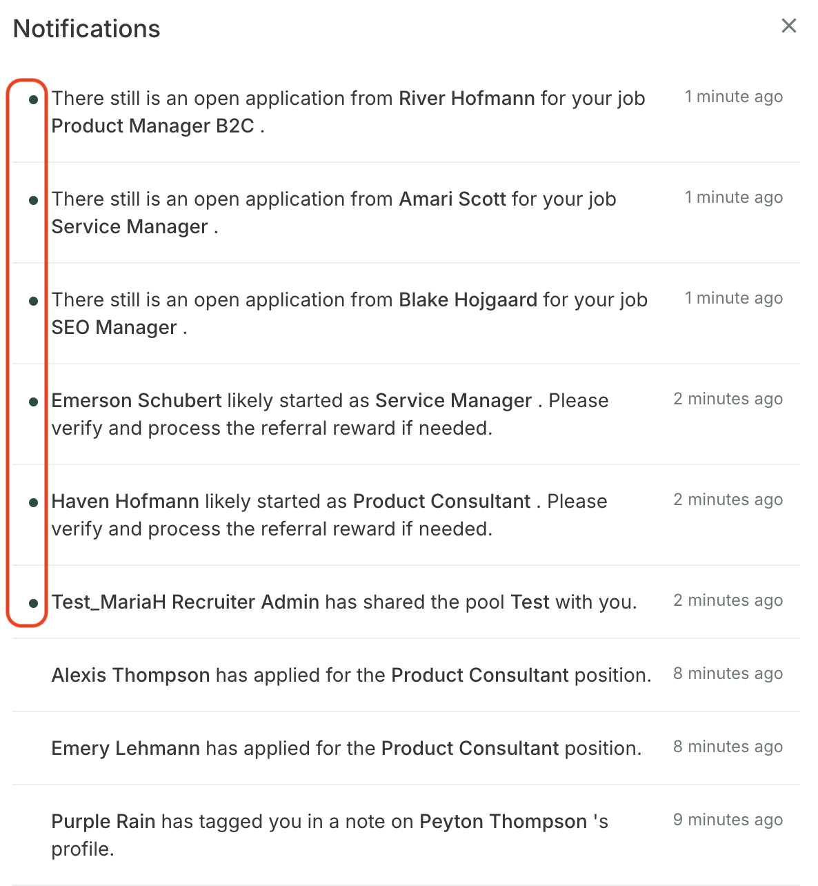 Therefore, we have create a notification feature for recruiters, where all tracked activity that usually would only be sent to e-mail, will also appear on the dashboard.