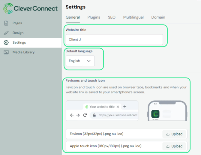 These icons are used on browser tabs, bookmarks, and when your website link is saved to a smartphone home screen. Accepted formats are specified directly within the CMS.