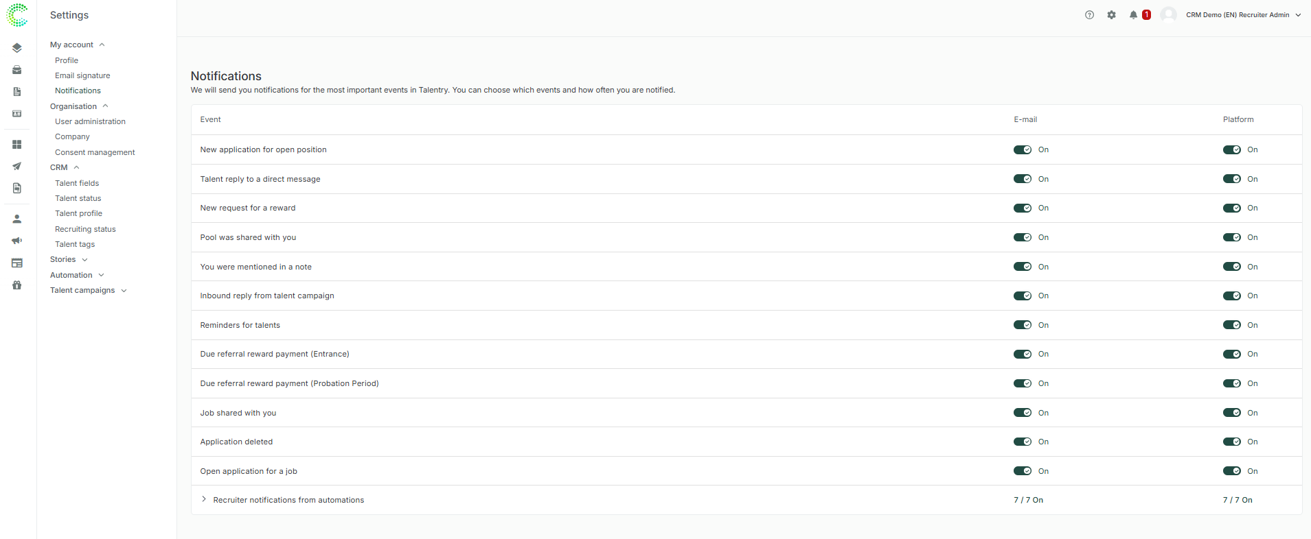 Reminders notifications are configurable: you can decide, as a user, if you want to receive this kind of notification or mute them. To do so, go to Settings > My account > Notifications. You can choose between getting an instant notification e-mail or not getting notified at all.