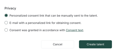➡️ Via the privacy query, a personalised consent link can be forwarded to the talent either manually or automatically.
