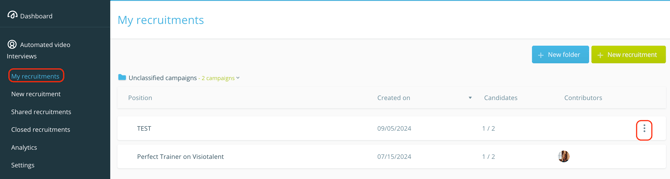 First, you have to go to "My campaigns" and then select the campaign that you want to delete. This can be done by pressing on the three dots on the right side. | ![]() |