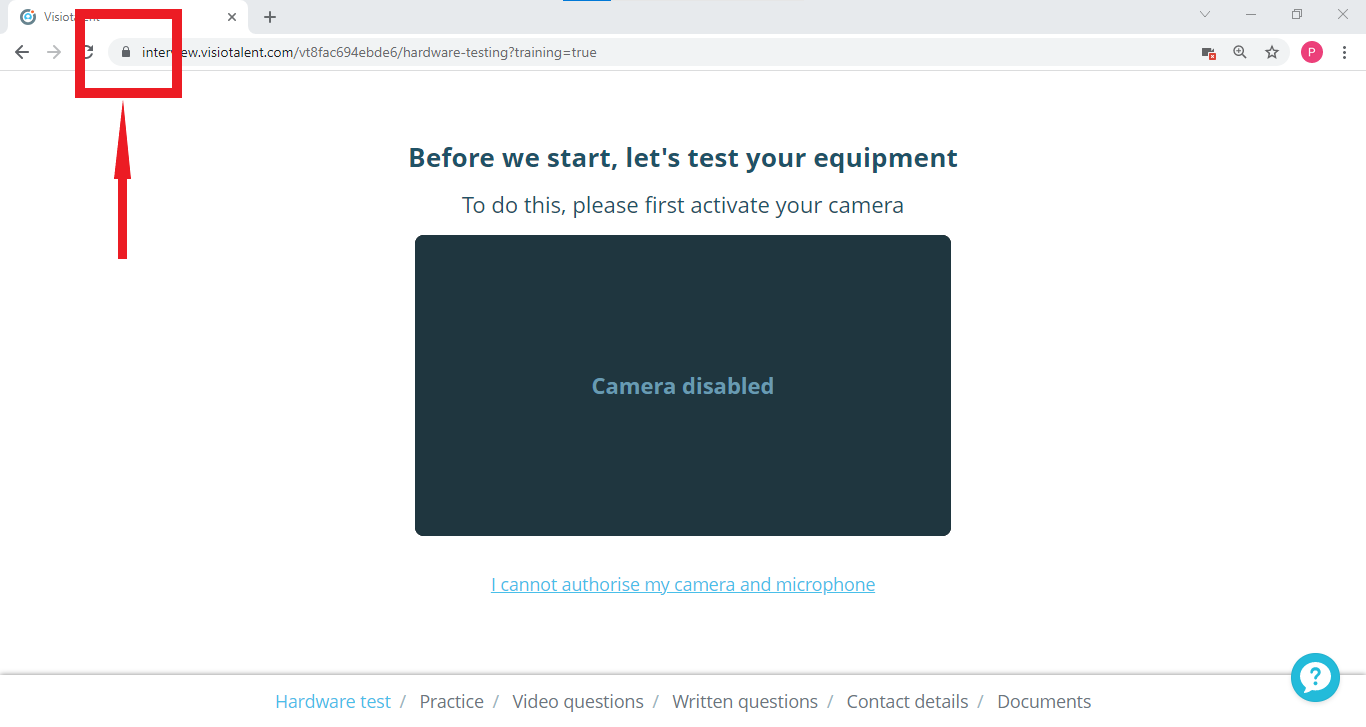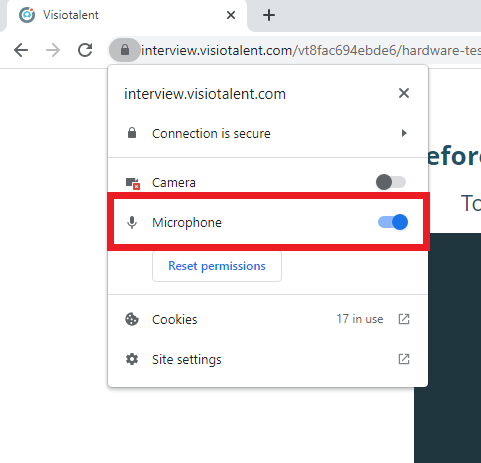 In this browser, you can check the activation of your microphone by clicking on the padlock on the left of the address bar.