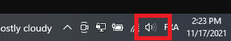 To open the microphone settings in Windows, you can click on the sound icon in the taskbar: