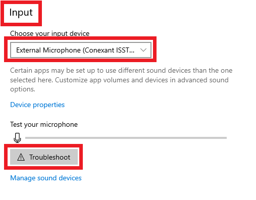In the new window you will find the category "Input". In this category, check that your microphone is selected: