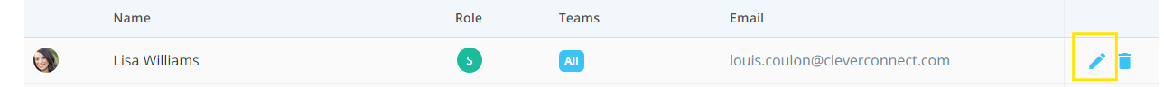 To edit an Admin / Super Admin at this point, simply click on the small pencil on the right.