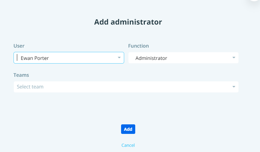 At this point, you will be able to edit the User, the function (choosing whether Admin or Super Admin) and decide whether to link one team, several teams or all to this administrator.