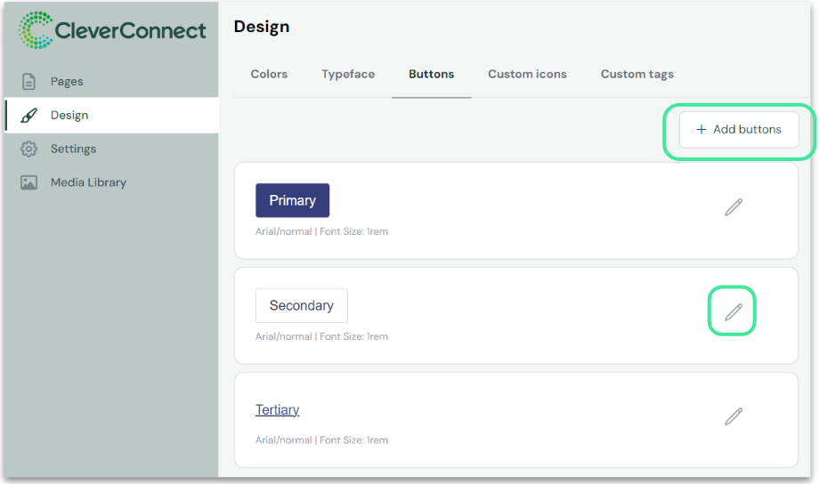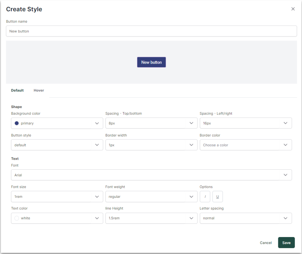 Customize the appearance and hover effects of your primary, secondary, and tertiary buttons.