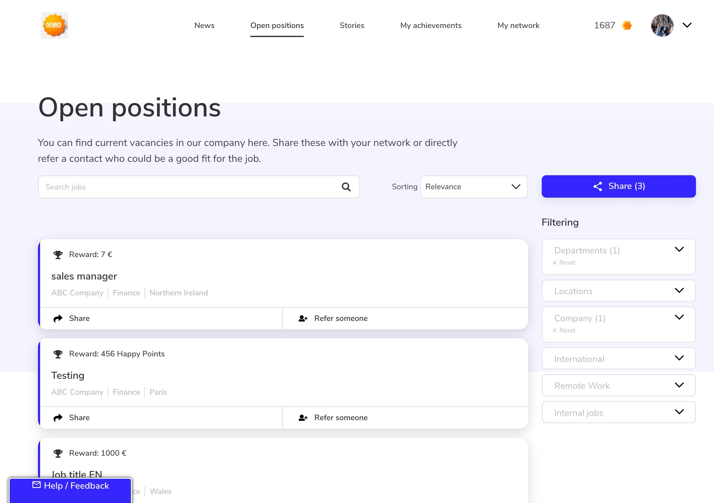 Using our sharing feature, recruiters can easily promote job opportunities within their organization: