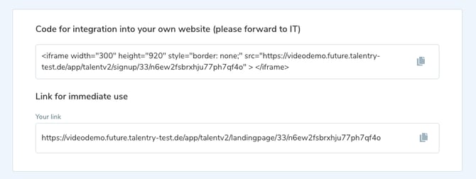 Once the form is ready, is it possible to embed it into a page or directly send the link to the Talent that will land on a dedicated page |