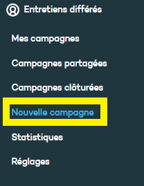 1. Cliquer sur "Nouvelle campagne" dans le menu à gauche.