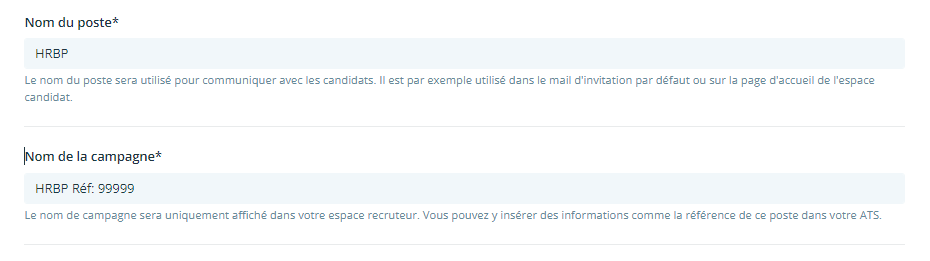 - Le nom de la campagne n’est pas visible par le candidat, uniquement par le recruteur.