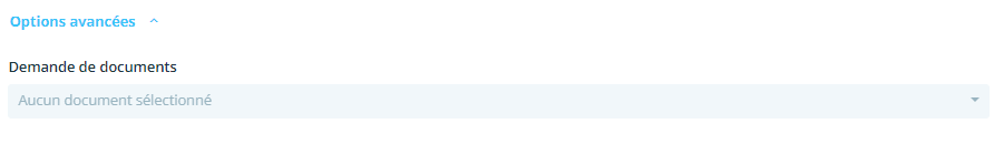6. Demander des documents supplémentaires (optionnel). Pour demander des documents aux candidats, cliquer sur « Options avancées » puis sélectionner l’intitulé souhaité dans la liste déroulante ou rédiger l’intitulé du document. Appuyer sur la touche « enter » du clavier pour valider la saisie.