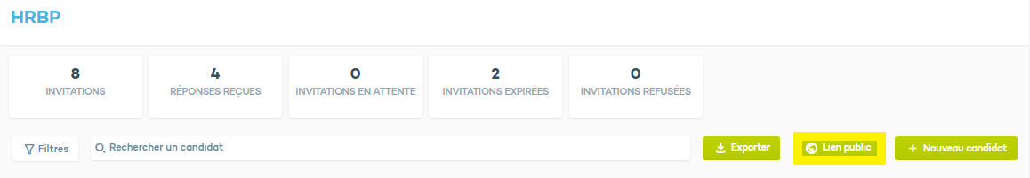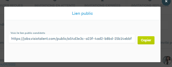 Copier le lien public qui permettra d’inviter des candidats sans avoir à inscrire leurs informations
