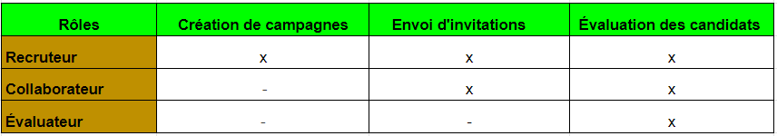 • Recruteur : Créer les campagnes, inviter les candidats et les évaluer.