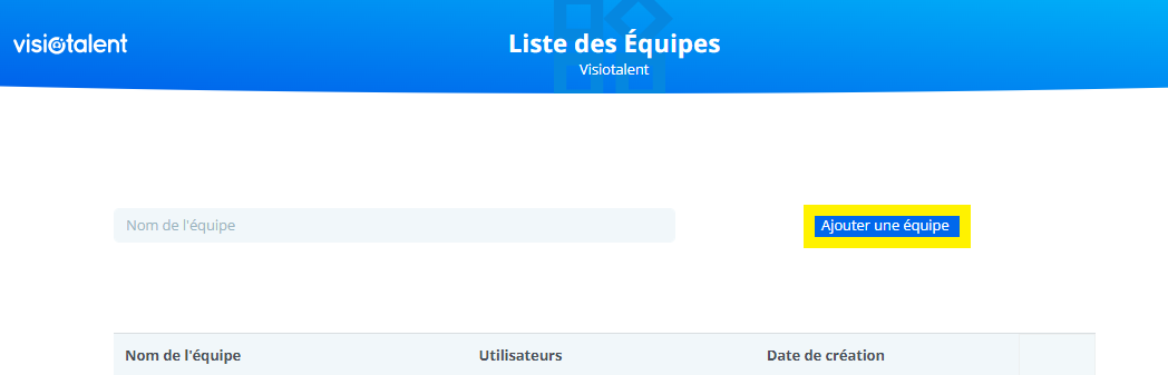 Une fois qu'une entreprise est configurée sur Visiotalent, si, par exemple, il s'agit d'une entreprise avec quelques utilisateurs travaillant ensemble sur les mêmes recrutements, il est important de créer une équipe dans laquelle mettre tous les utilisateurs, de sorte que les utilisateurs puissent partager des campagnes entre eux et effectuer des actions sur eux.