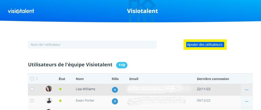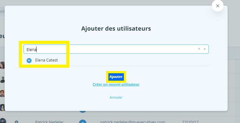 En cliquant sur "Voir utilisateurs", vous pourrez voir tous les utilisateurs d'une équipe.