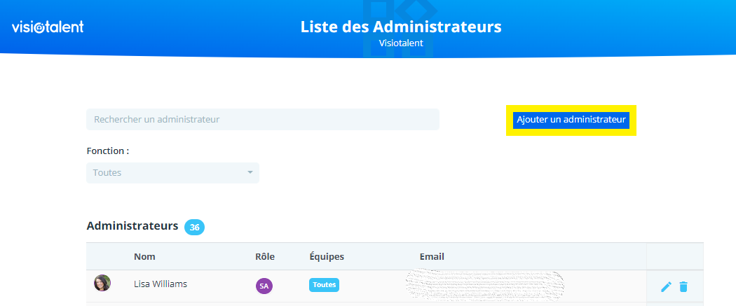 Si, en revanche, vous souhaitez supprimer un administrateur, il suffit de cliquer sur le panier à droite
