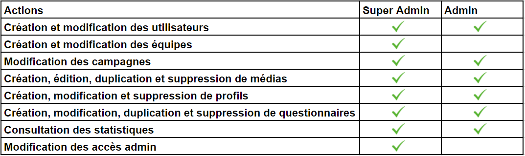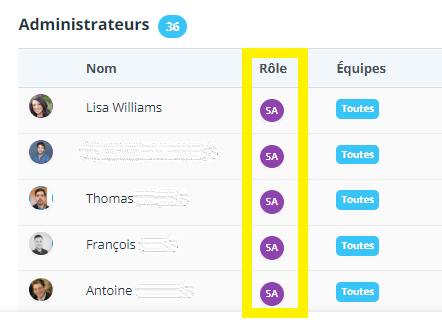 Cette page répertorie tous les administrateurs ou super-administrateurs de l'entreprise.