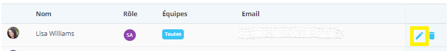Pour modifier un Admin / Super Admin à ce stade, il suffit de cliquer sur le petit crayon à droite.