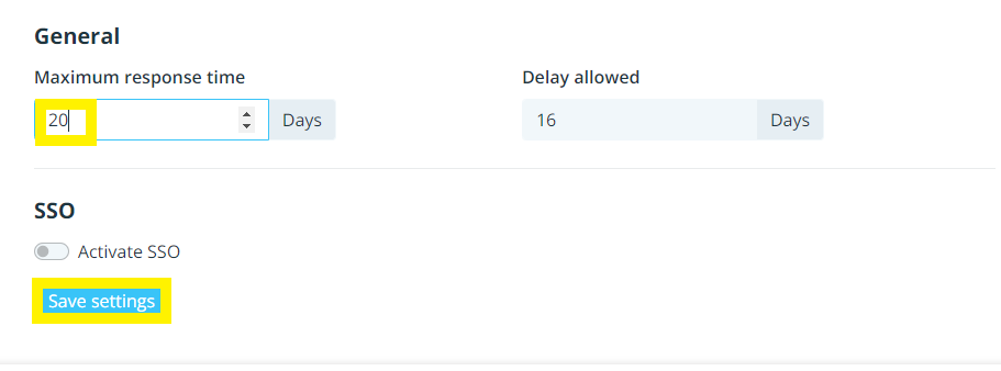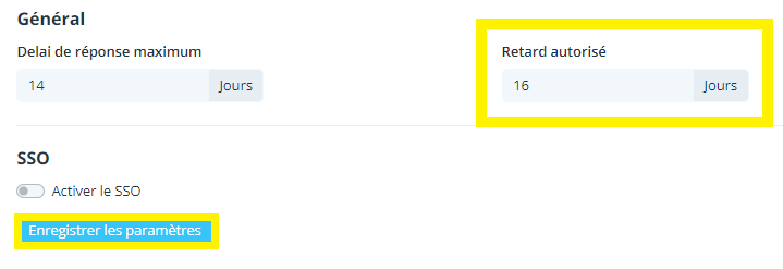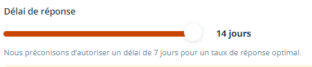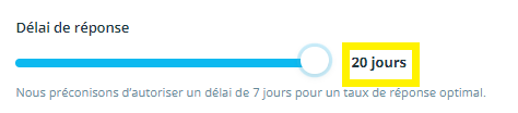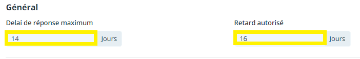 Par exemple, je veux augmenter le délai maximal de réponse à 20 jours, alors que le délai maximal par défaut est de 14 jours :